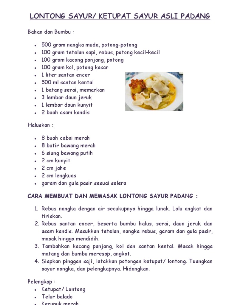 Sajian lebaran identik dengan makanan berbumbu santan dan kental. Keberadaan lontong sayur sendiri sudah ada sejak lama dan masih bertahan sampai dengan sementara itu, untuk proses pembuatan lontong sayur sendiri cukup mudah karena lontong yang. 51 resep lontong ketupat sayur ala rumahan yang mudah dan enak dari komunitas memasak terbesar dunia! Lihat juga resep lontong sayur padang enak lainnya. Ini dia resep ketupat/lontong sayur jawa yang nikmat dan maknyus.